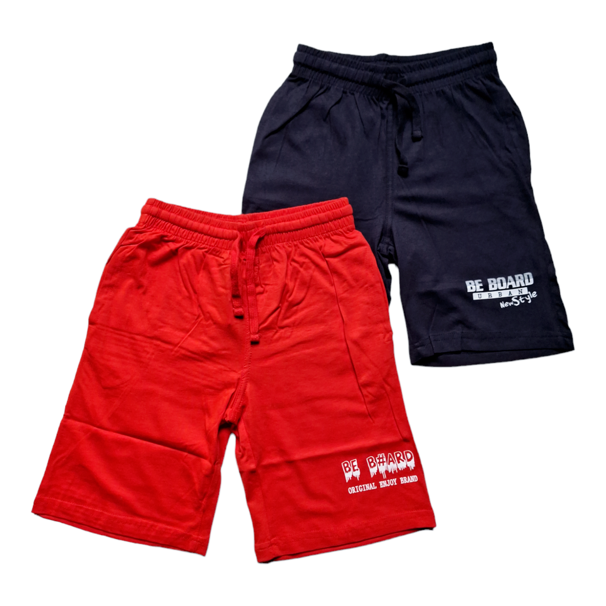 Bermuda in cotone da bambino, con elastico morbido in vita e coulisse regolabile. Ideale per ogni occasione. Realizzato con materiali di alta qualità, presenta tasche laterali e piccola scritta stampata sul lato per aggiungere un tocco di fantasia e sportività al look del tuo bambino. Vestibilità comoda e praticità per le giornate di gioco.