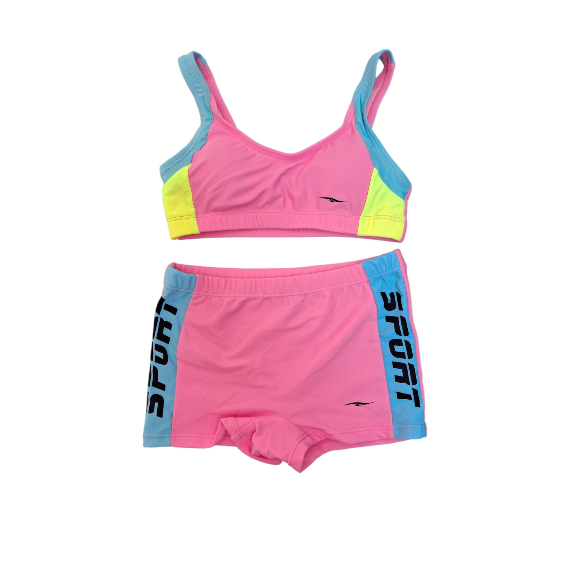 Liberta di movimento e stile per questo bikini sportivo da ragazza ; colori brillanti e comodità al primo posto. Fascetta comoda e con imbottitura removibile, spalla larga, vestizione pratica. Pantaloncino con elastico morbido in vita; comfort e sicurezza durante il movimento, stile dinamico e alla moda. Materiale di ottima qualità destinato a durare nel tempo.