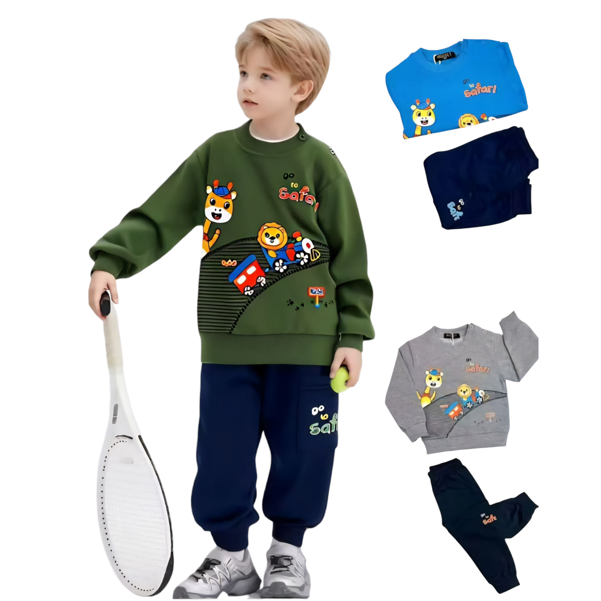 Il nostro completo da bambino a girocollo è perfetto per le fresche giornate autunnali. Realizzato con materiali di alta qualità, garantisce comfort e stile per i piccoli ometti.