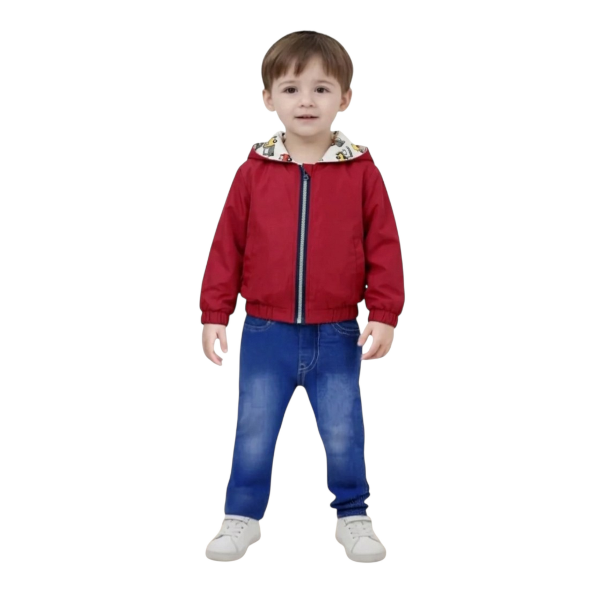 Set 3 Pezzi: Include una giacca leggera con cappuccio, reversibile, una t-shirt con grafica a tema e pantaloni jeans leggerissimi coordinati.