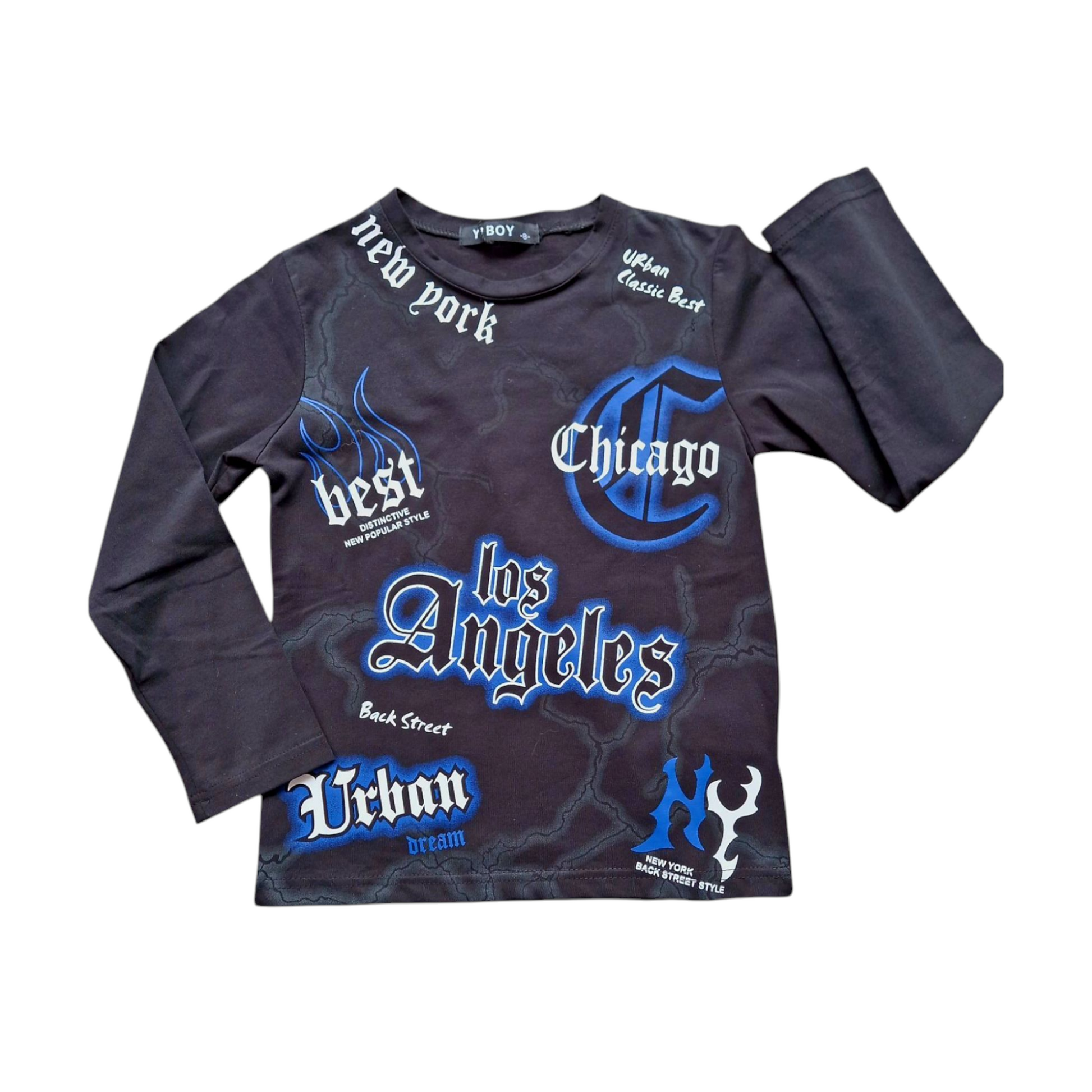 Maglietta da bambino , in cotone leggero, con stampa street sul davanti. I disegni aggiungono un tocco di fascino alla maglietta e catturano l'attenzione con un tocco di originalità e personalità al look del tuo bambino.