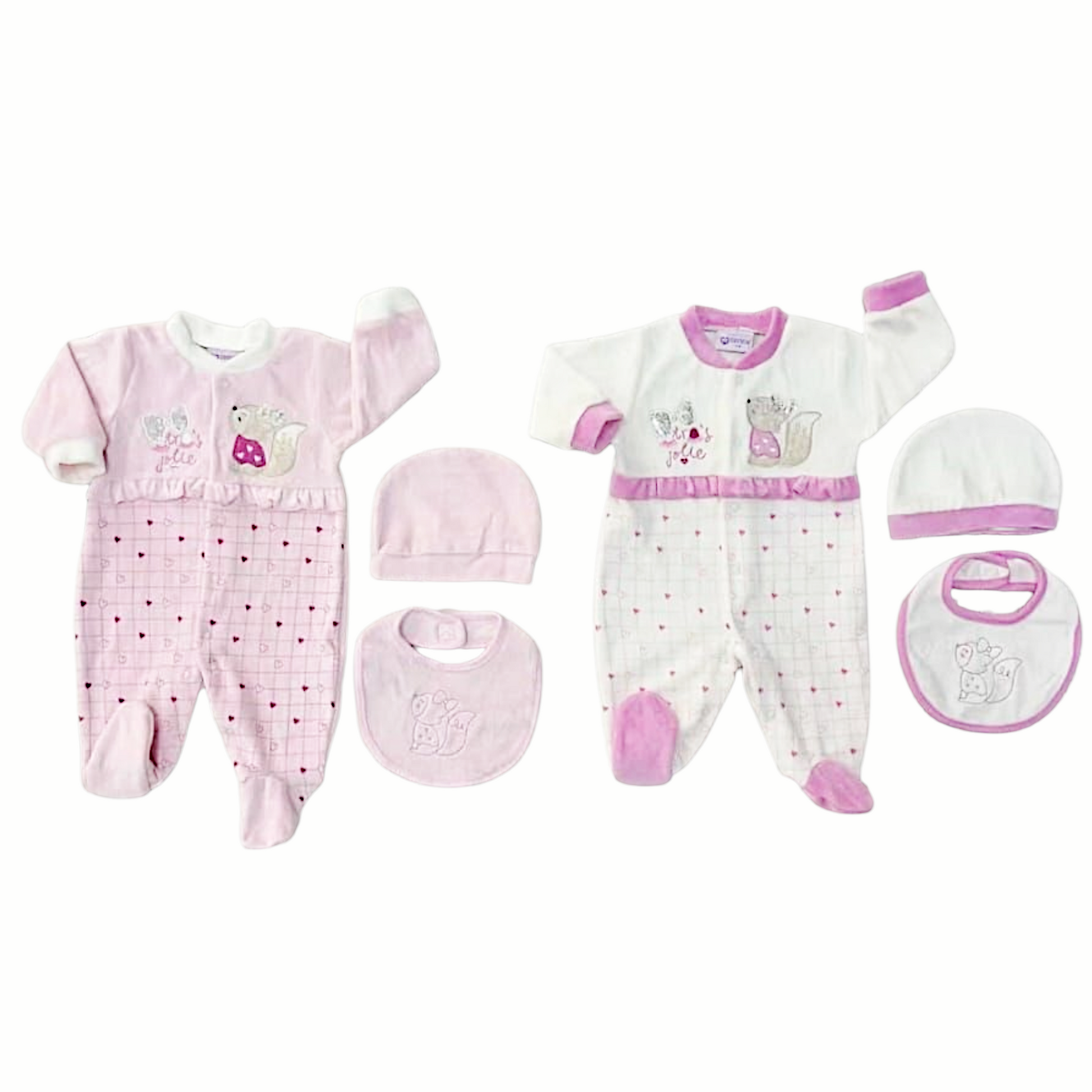 Tutina Neonata Ciniglia Con Bavaglino e Cuffietta